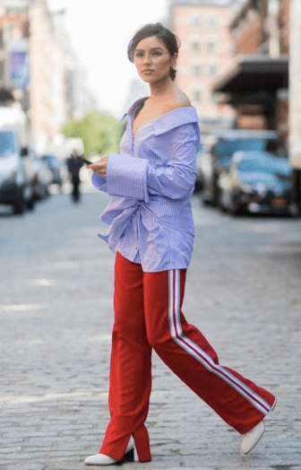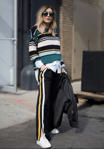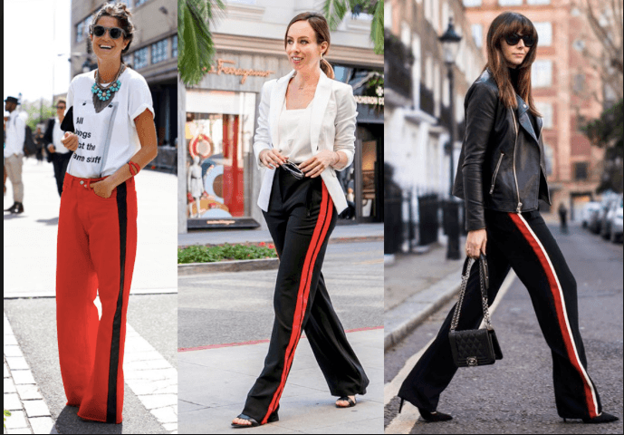 Hace ya varias temporadas que nuestros pantalones, tanto los clásicos jeans como los palazzo, con pinzas o la parte de abajo del sastre, se tiñeron de personalidad deportiva imprimiendo una banda a todo color en su lateral.