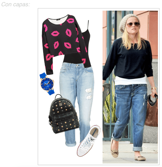 Lleva tus boyfriends jeans con prendas superiores superpuestas es decir, (en capas), la parte más importante de vestirse haciendo uso de las capas, es contar con la ropa interior correcta. Lo ideal es elegir la ropa interior que no haga líneas notorias, a partir de allí, consigue una camiseta o top ajustado y sobre esta, opta por llevar una remera, un top, una camisa o cualquier prenda que vaya de acuerdo a tu estilo para lograr tu look en capas.