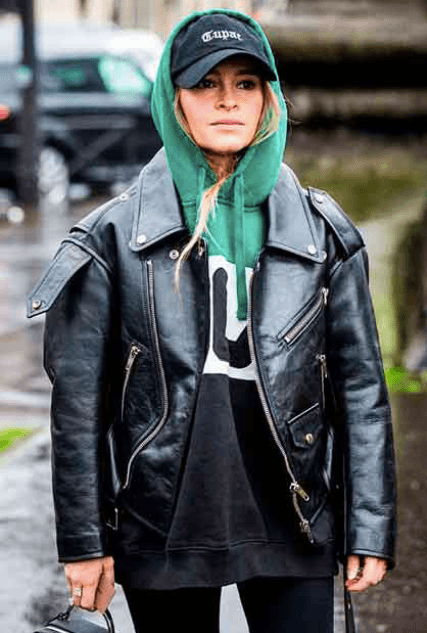 Miroslava nos dio una pista para el fin de semana XXL: buzo varsity o campera con capucha y chaqueta negra clásica.