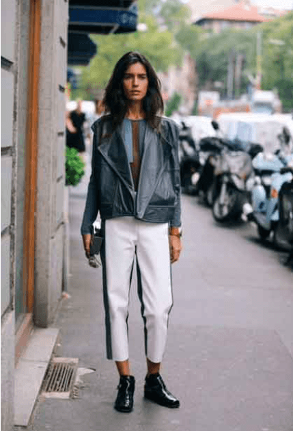 Con un pantalón blanco