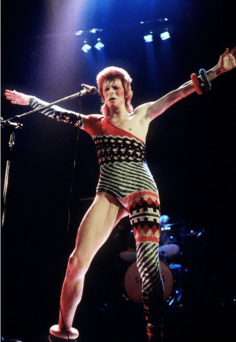 Sexualmente ambiguo, pero deseable tanto para hombres y mujeres, su personaje Ziggy Stardust – sigue siendo una de las imágenes más perdurables e irónicos de la cultura popular y ha sido replicado incontablemente ya que, incluso Vogue emite en 2003 a Kate Moss asumiendo el famoso papel.