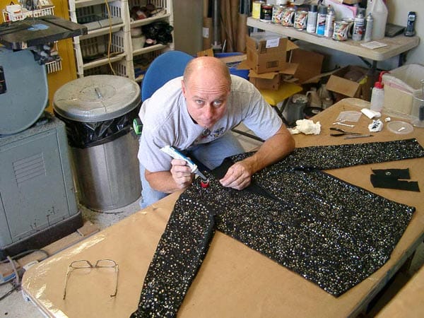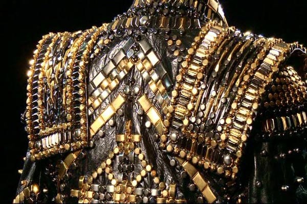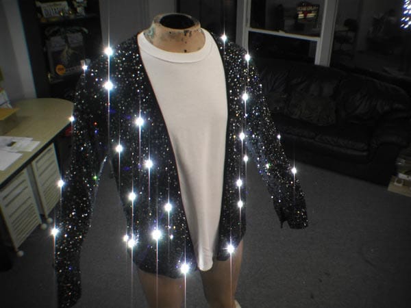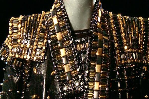 Pero para mi, me encanta la chaqueta de cuero de Black or White, con tres chapitas coloreadas, que es casi una referencia a las chaquetas Samurai. La última chaqueta es mi favorita, especialmente porque Michael estaba entusiasmado con ella. Hice lo que Michael llamaba ’tesoros secretos’ en forma de pequeñas gotas de agua incrustadas alrededor de trozos de cristal.