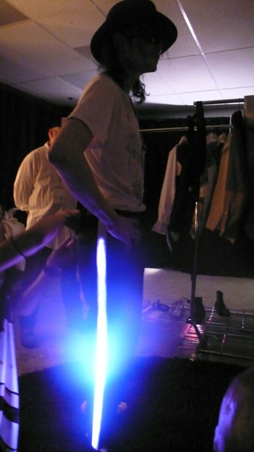 Y TAMBIÉN ESTÁ EL TRAJE CON LUZ DE BILLIE JEAN, QUE ERA UNA COLABORACIÓN CON PHILIPS TECHNOLOGY, QUE DE VERDAD FUE LO QUE MÁS FELIZ LE HIZO. LA ÚLTIMA VEZ QUE Lo VI FUE SEIS DÍAS ANTES DE QUE PARTIÉRAMOS HACIA LONDRES Y LE PROBÉ ESOS PANTALONES Y SE QUEDÓ CALLADO, TOTALMENTE IMPRESIONADO. TRAS UNOS TREINTA SEGUNDOS DIJO “ESTO ES LO QUE SIEMPRE HE QUERIDO”