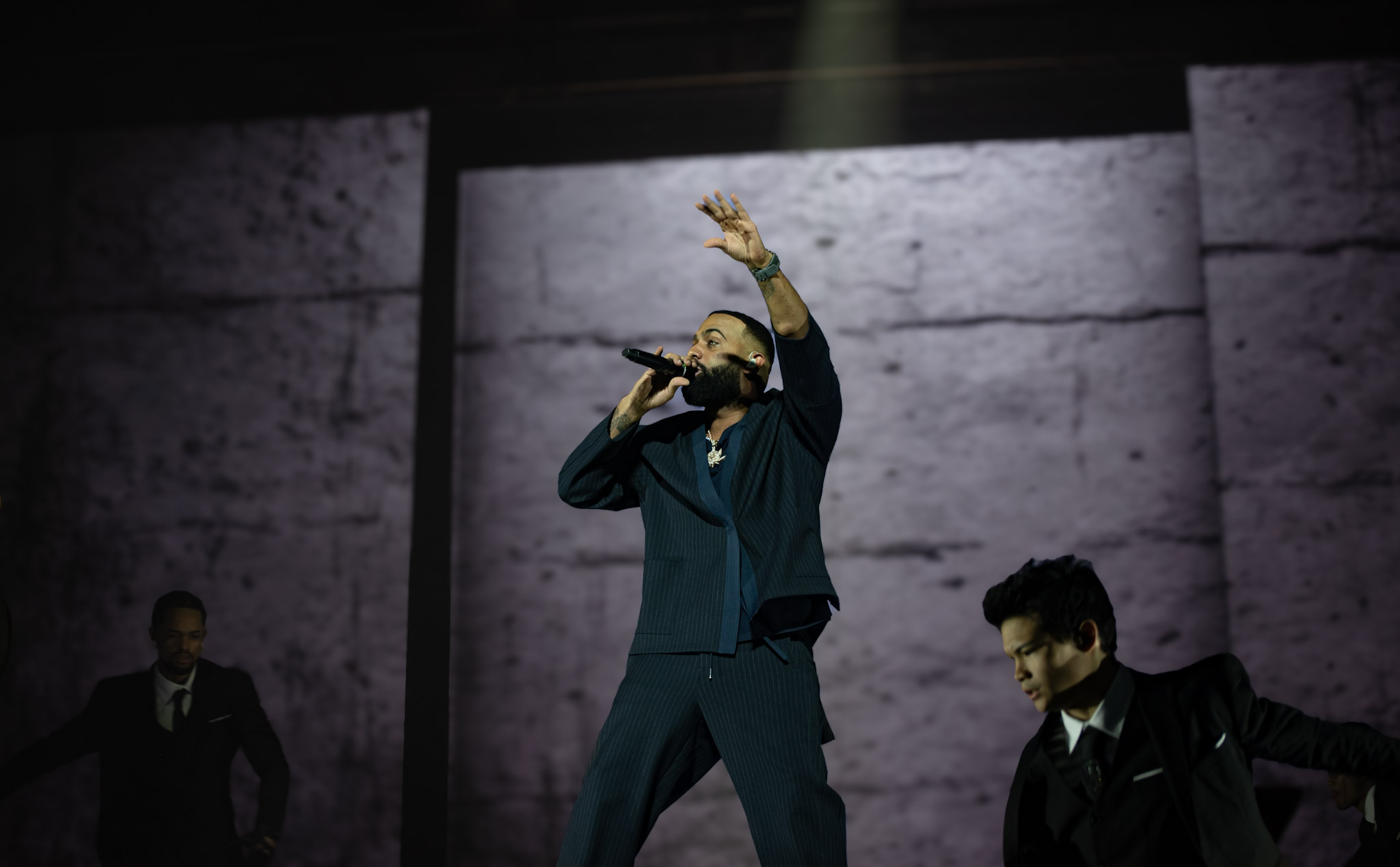 La proyección del video del tour marca el inicio. Invencible abre el set. “Barcelona buenas noches”. El bajo de la base musical hace vibrar el piso, el público estalla y los bailarines acompañan. Ohtani y Vetements consolidan el arranque. “Barcelona que placer estar con ustedes nuevamente, vamos a romperla esta noche”. Fuego en el escenario, rap y hip hop más que trap, con un sonido duro y una mezcla constante de castellano e inglés que define su forma de escribir y de decir.