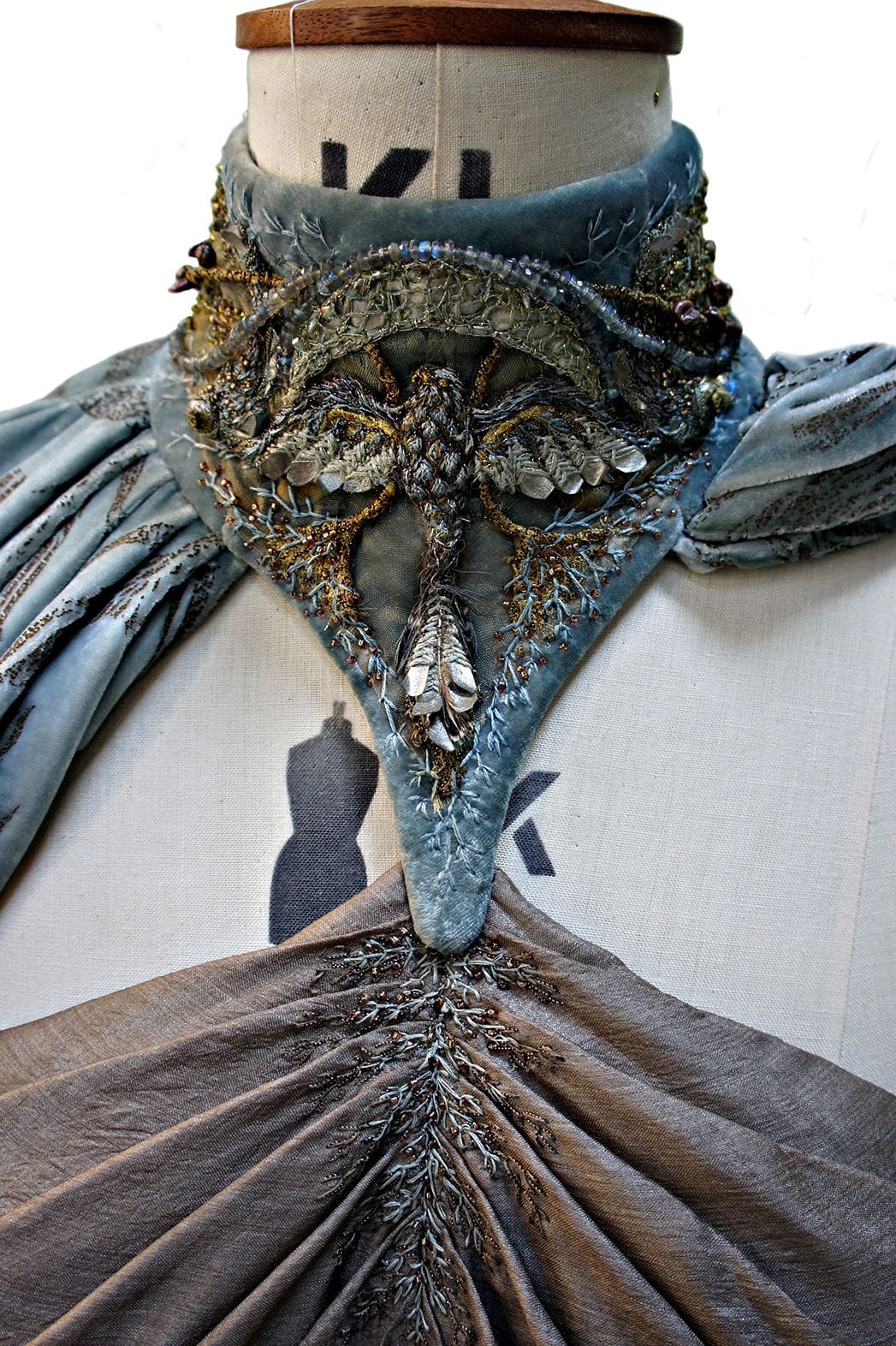 Juego de tronos es una historia de cifras récord: sets en siete países, seis directores solo para crear la última temporada, 10 millones de dólares para montar únicamente el capítulo piloto, más de 40 nominaciones a los Emmy, 257 actores, 52 semanas de rodaje, 3.000 trajes, 4.000 accesorios… También su equipo de vestuario rompe las estadísticas: lo componen más de 100 personas, repartidas por los cinco continentes, que están capitaneadas por la diseñadora Michele Clapton. Ella misma se ha encargado de seleccionarlos, uno a uno, entre los mejores especialistas de cada sector: bordadores, armeros, patronistas, orfebres, expertos en tejidos y envejecimiento de prendas.