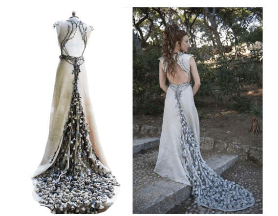 Cada personaje tiene sus características específicas. El mejor ejemplo para Clapton es Daenerys Targaryen (Emilia Clarke): «Es una khaleesi. Está en el desierto, tiene que montar a caballo y dormir en tiendas de campaña. Por tanto, repite ropa y lleva pantalones. Luego la veremos ampliar su vestuario con más vestidos y prendas para dormir porque se establecerá en una ciudad». Pero si hay que fijarse en un vestido, es duda, el traje de novia de Margaery Tyrell (Natalie Dormer).