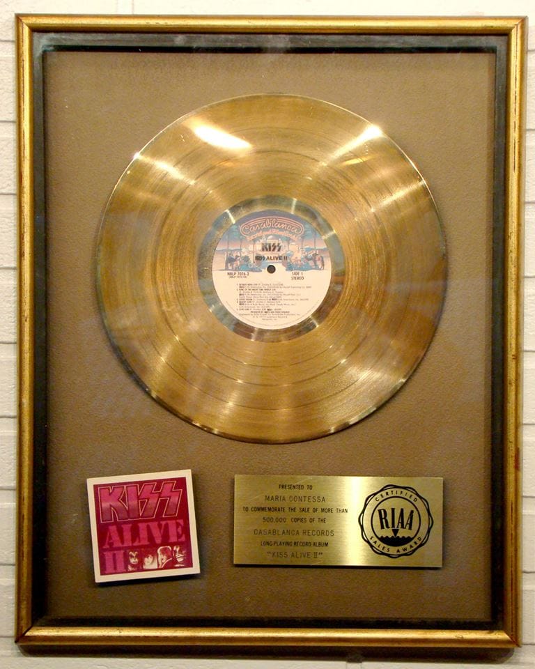 «Si, totalmente, mi acreditación publica llega el 14 de octubre de 1977, cuando kiss lanzó su álbum kiss Alive II. Aquí está mi disco original de oro como creador de vestuario/diseñador para la banda!