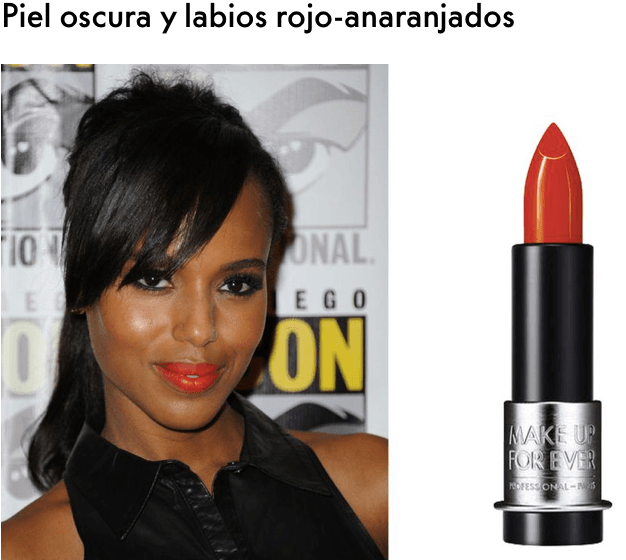Las pieles más oscuras pueden permitirse el lujo de ser más innovadoras con los tonos de su ‘rouge’. Un color anaranjado como el que luce Kerry Washington es perfecto para destacar el subtono de su piel.
