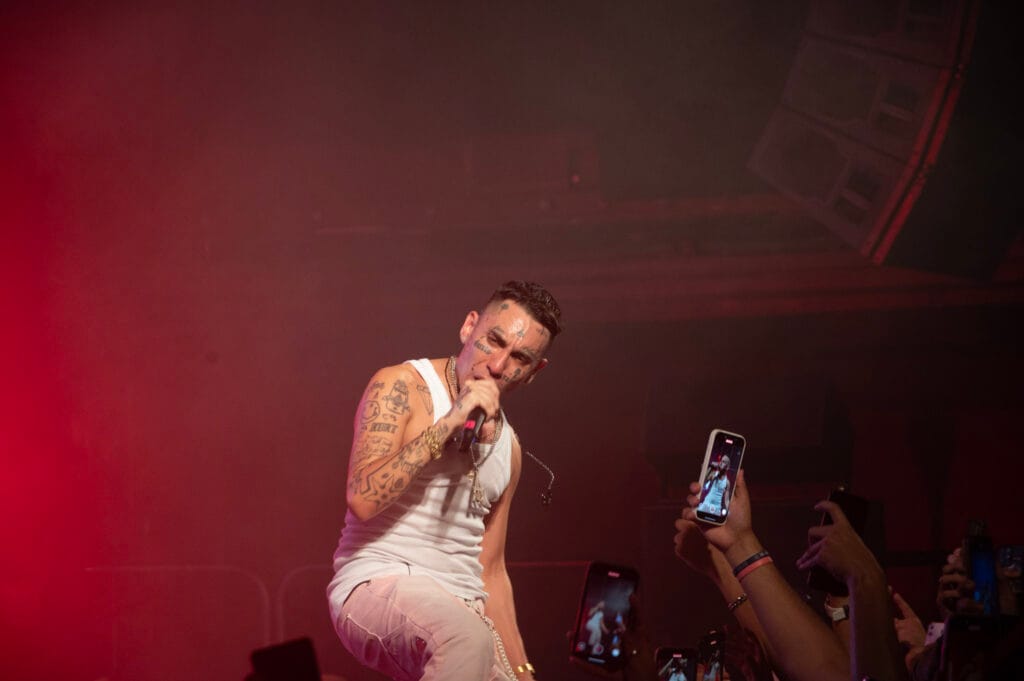 Sala Apolo se transformó en un templo del trap. El público, abarrotado hasta el último rincón, vitoreaba un mantra que se repetía en loop: “he he he he”. En la penumbra del backstage, Neo Pistea arrodillado, en trance, concentraba la energía como quien prepara la bala perfecta, sí: una bala de plata. Cuando su voz en off soltó: “Barcelona, buenas noches”, se escuchó el primer disparo de lo que serían 28 impactos sin tregua.