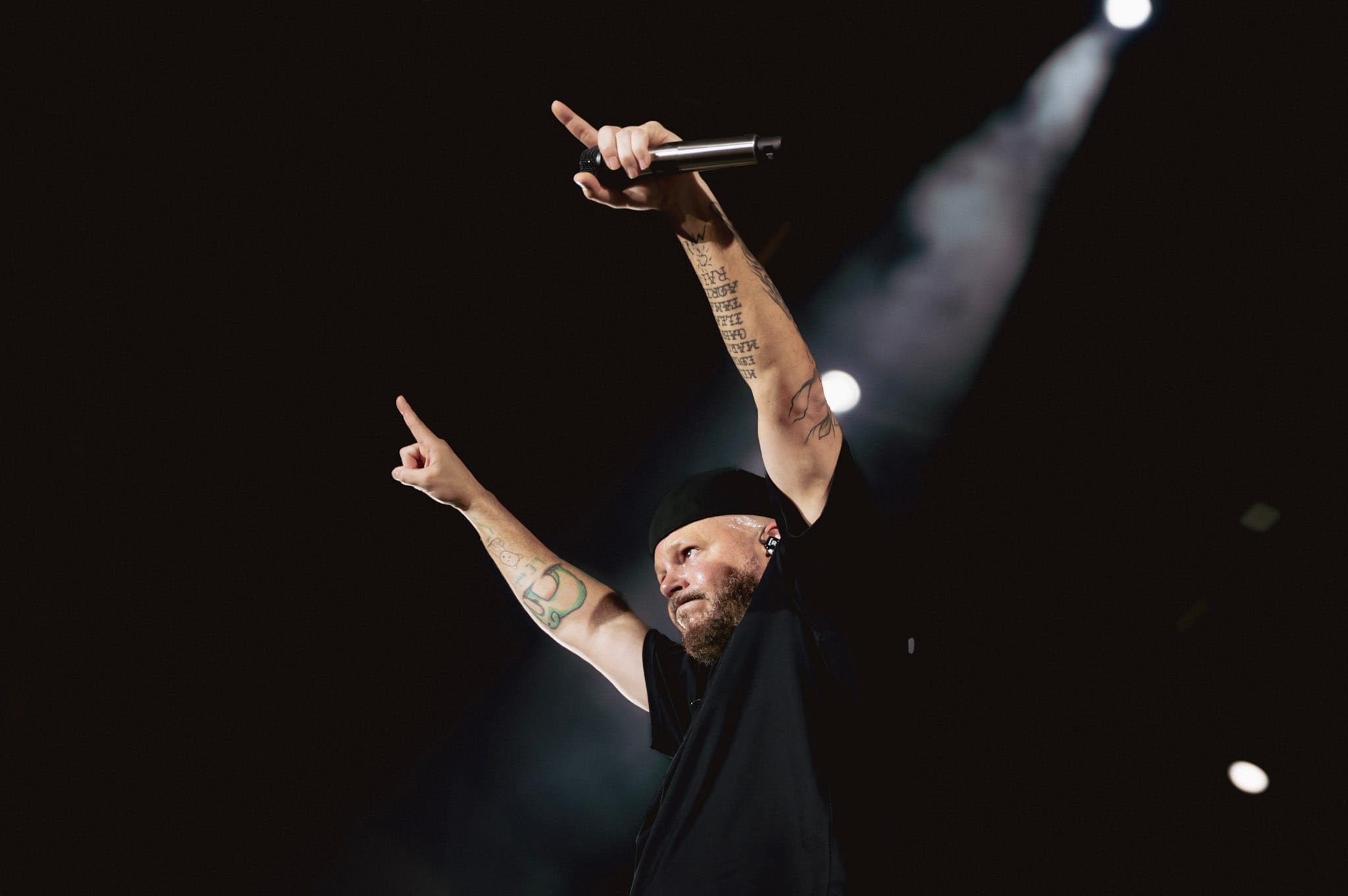 “Educación pública y gratuita”, dejó caer al pasar, entre beats. Sin arengas ni solemnidades, solo la verdad dicha en caliente. Atrévete-te-te estalló en respuesta: el público lo tapaba de tan fuerte que la cantaban, desbordándolo como si la letra no le perteneciera ya.