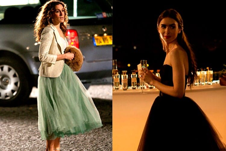Si creías que la diseñadora de vestuario no iba a esconder sus propios easter eggs dentro de los outfits de sus personajes, estás equivocada. El más evidente es el que Emily llevó en el capítulo 2, un vestido negro de Alexander Vauthier que fue seleccionado para hacerle un guiño a la falda tutú de Carrie Bradshaw, específicamente la de color verde menta que lleva en París.