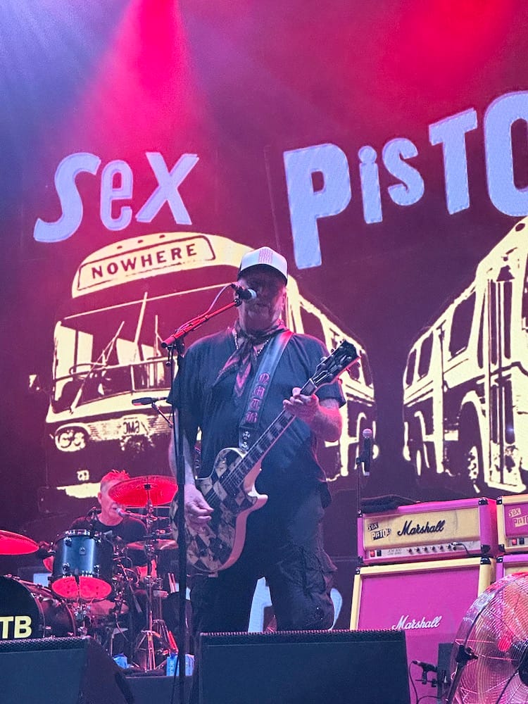 Aparecieron en el escenario sin necesidad de anunciarse. Uno por uno, como figuras que ya no necesitan presentación. Primero Paul Cook, marcando el pulso como quien conoce el oficio. Después Steve Jones, sólido, seguro. Luego Glen Matlock, cerrando la formación. Se ubicaron. Recién entonces se colgaron los instrumentos. Sin show previo, sin intro grandilocuente. Punk ceremonial.