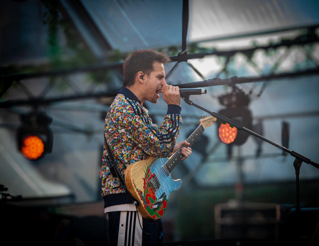 La elección del Poble Espanyol como escenario no fue casual. El espacio aportó un aire íntimo y envolvente, con una acústica que realzó cada detalle musical, aunque algunos juegos de luces (propio de tener que iluminar un escenario con luz natural) restaron visibilidad en momentos clave. Aun así, la energía no decayó ni un segundo. El trío desplegó un repertorio que combinó nostalgia y frescura, desde los temas que los catapultaron durante el confinamiento hasta sus composiciones más recientes. “Let It Out” y “Gotta Be Patient” fueron recibidas como himnos, mientras que las colaboraciones y guiños a la rumba catalana encendieron el ambiente.