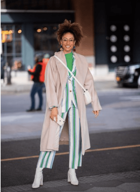 Total white/black look y prácticamente cualquier vestimenta que te permita lucir un solo color de los pies a la cabeza será la mejor forma de lucir mucho más alta de lo normal. Si no deseas que todo tu outfit sea del mismo color, también puedes optar por llevar el mismo tono de tus pantalones en tus zapatos.